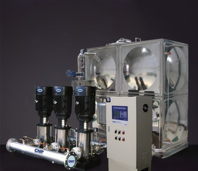 箱式管網(wǎng)疊壓變頻供水設(shè)備是一體化供水設(shè)備,可直接從自來水管網(wǎng)取水,疊壓供水,利用兩路進(jìn)水對設(shè)備進(jìn)水進(jìn)行穩(wěn)壓調(diào)節(jié),差量補(bǔ)償,從而達(dá)到恒壓供水節(jié)能的目的。主要是由密封水箱、增壓設(shè)備、穩(wěn)流罐、電控柜及泵組組成。