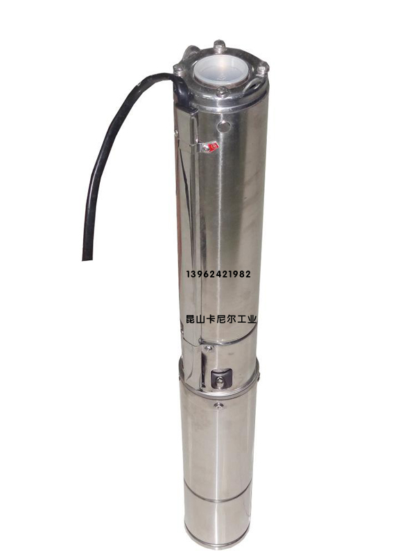 水泵的級數來達到。當井用潛水電動機的功率很大而潛水泵的揚程有很高時,井用潛水電泵又細又長。按GB/T2816《井用潛水泵》和GBT2818《井用潛水異步電動機》標準,井用潛水電泵的功率為0.37-220KW,流量2-500m3/h,揚程9-598m,同步轉數為1500r/min或3000r/min。目前生產的產品主要有單相或三相,充水式、充油式及屏蔽式上泵型結構的井用潛水電泵,也有少量的單相干式上泵型結構的井用潛水電泵。