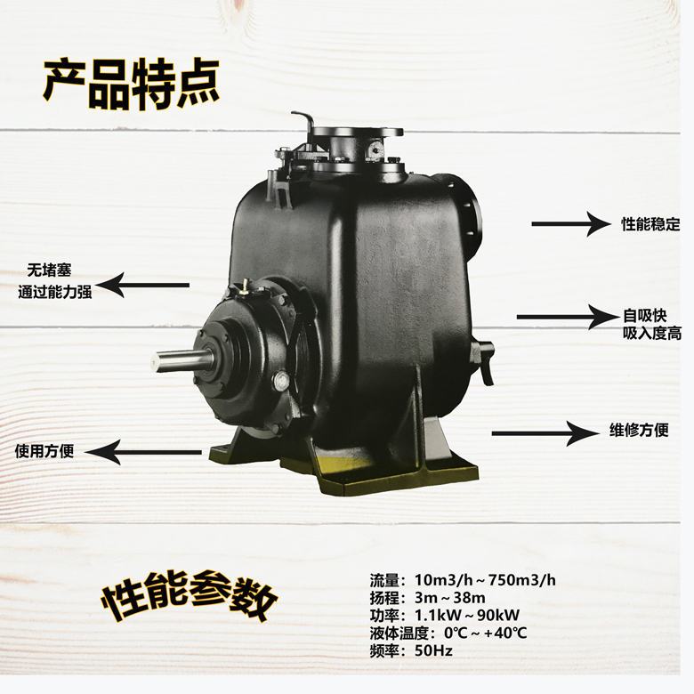 性能穩(wěn)定、自吸快、吸入度高、維修方便、無堵塞,通過能力強(qiáng)、使用方便